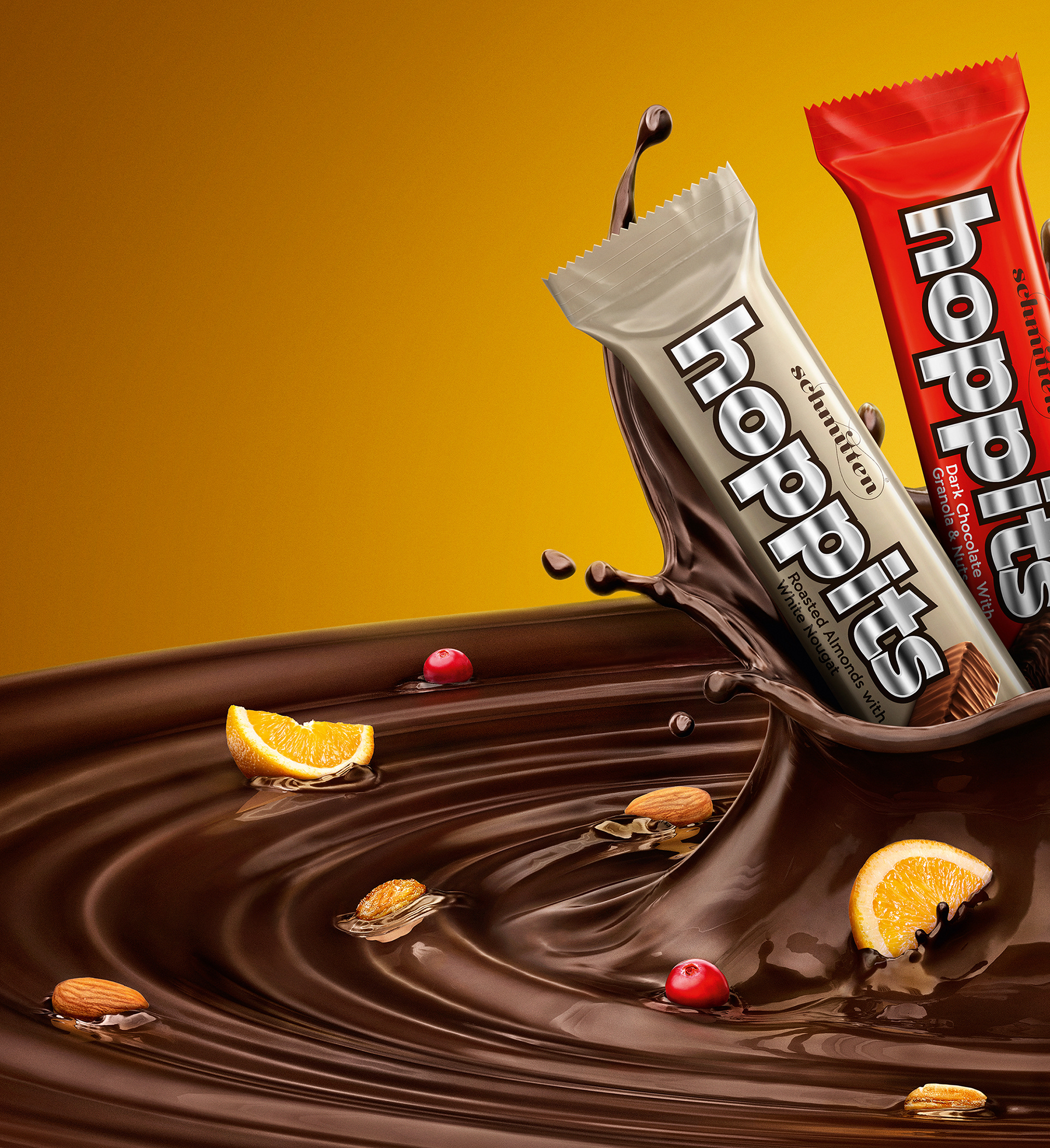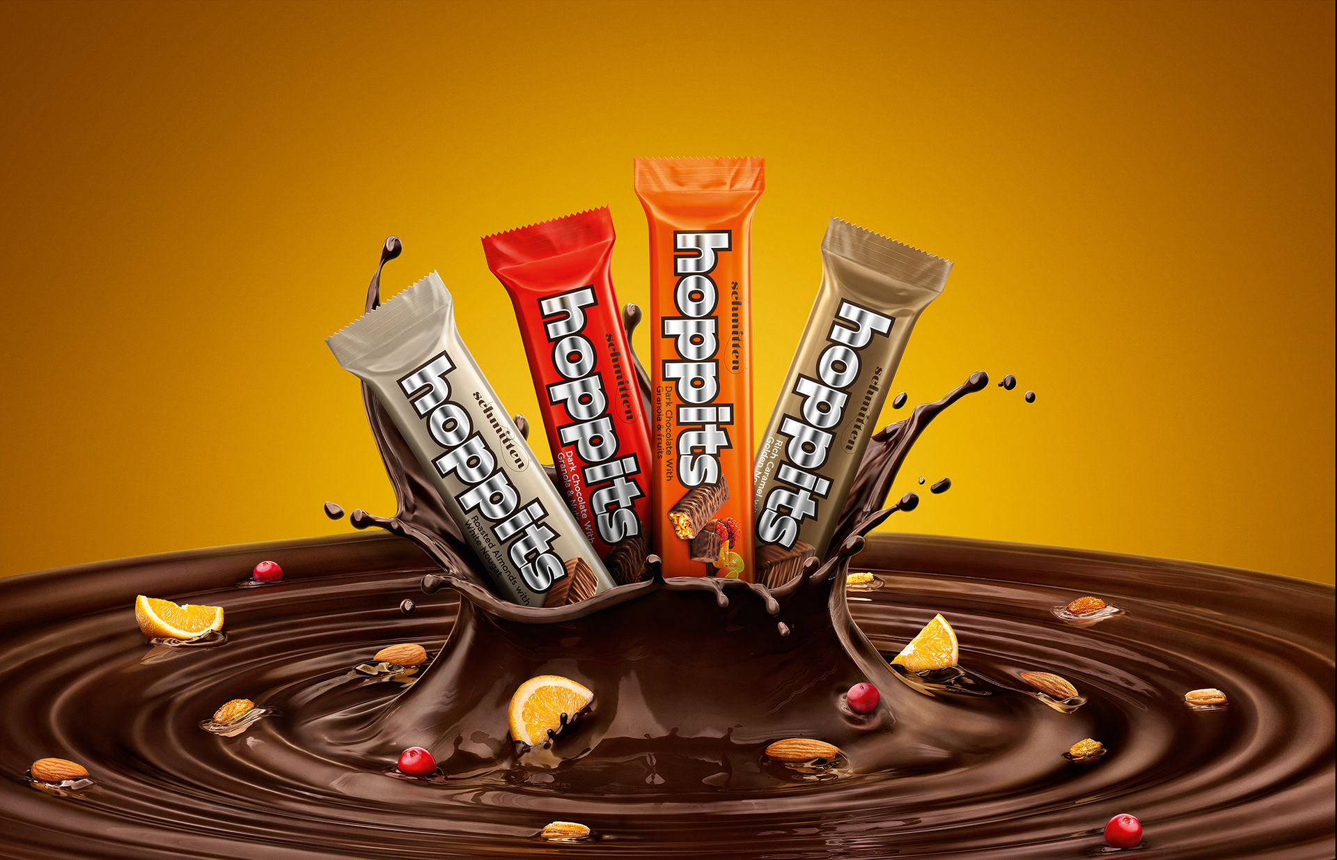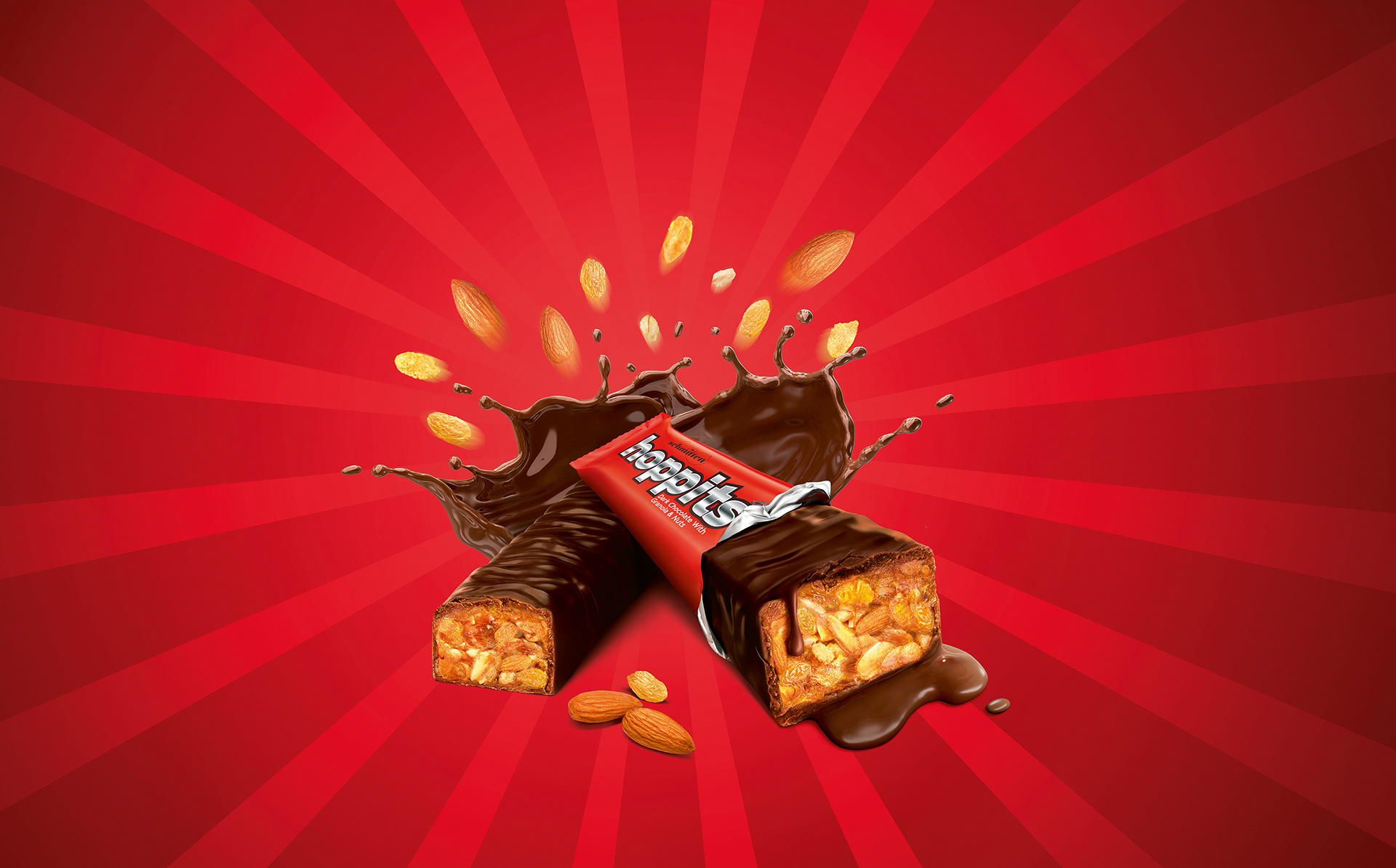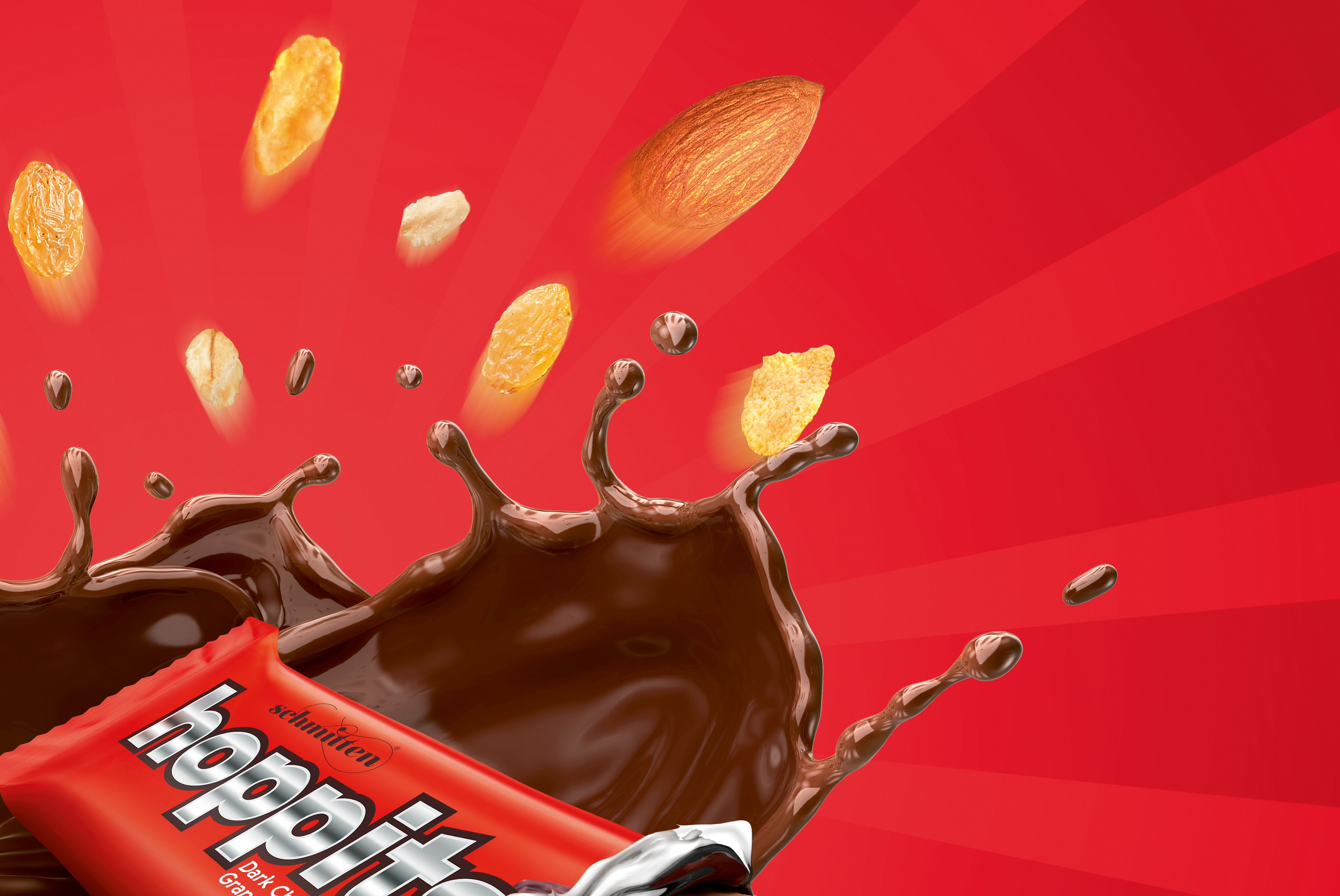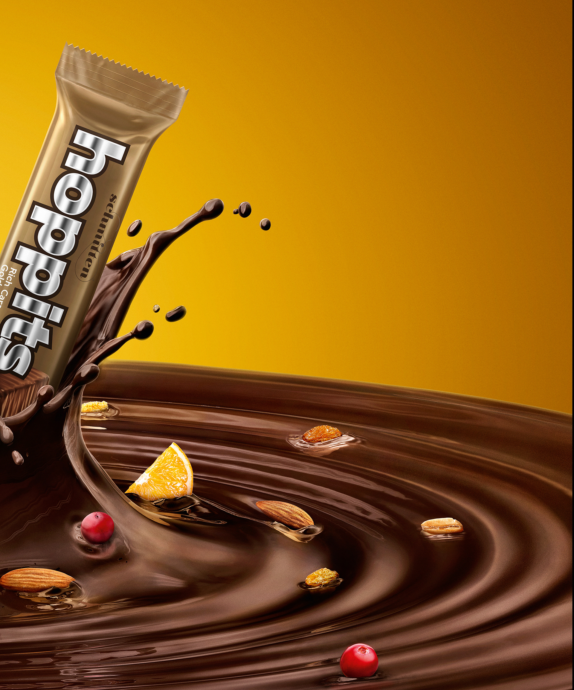 Hoppits Chocolates | CGI : Chocolate Modeling and Rendering by Heten Daiya and Sooraj Verma, Splash Modeling and Rendering by Mahesh Patel | Retouch by Nilesh Thale, Vijay Namaye, Manoj Rane at Happy Finish India.